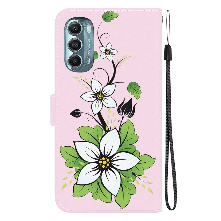 Funda de Cuero para Motorola Moto G Stylus 5G 2022 con Dibujo Coloreado y Textura de Cristal (Lirio)