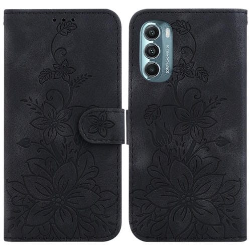 Funda para Motorola Moto G Stylus 5G 2022 de Cuero con Relieve Lily (Negro)