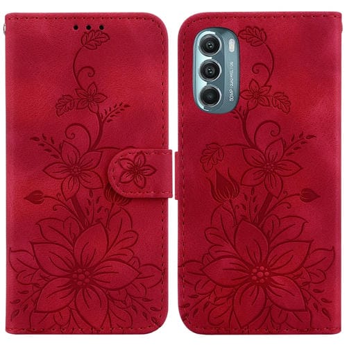Funda para Motorola Moto G Stylus 5G 2022 de Cuero con Relieve Lily (Rojo)