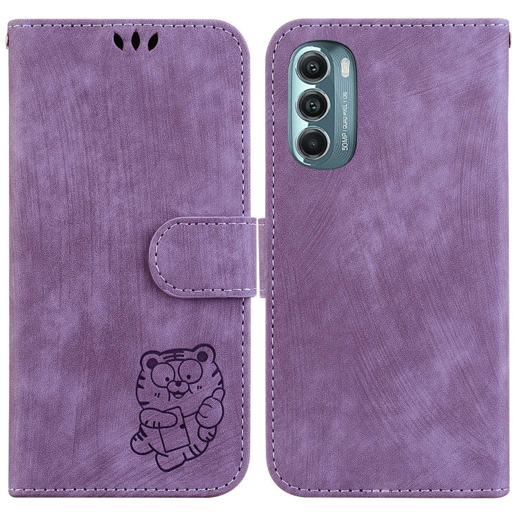 Funda de Cuero para Motorola Moto G Stylus 5G 2022 con Relieve Little Tiger (Púrpura)