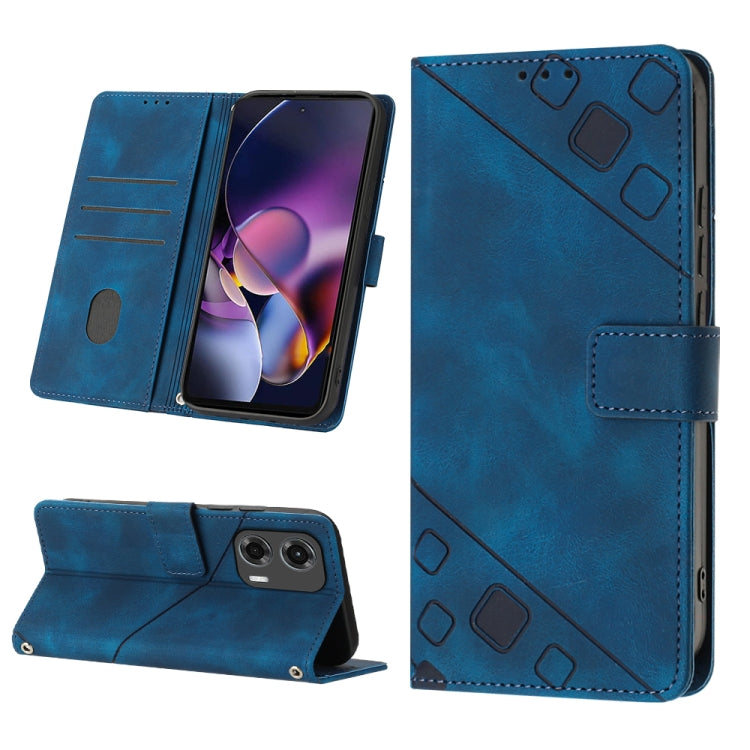 Funda de Cuero para Motorola Moto G Stylus 5G con Relieve y Sensación de Piel (Azul)