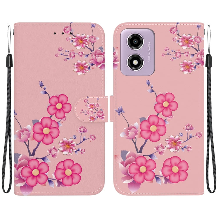 Funda para Motorola Moto G04S y Moto E14 de Cuero con Dibujo Coloreado y Textura de Cristal (Flores de Cerezo)