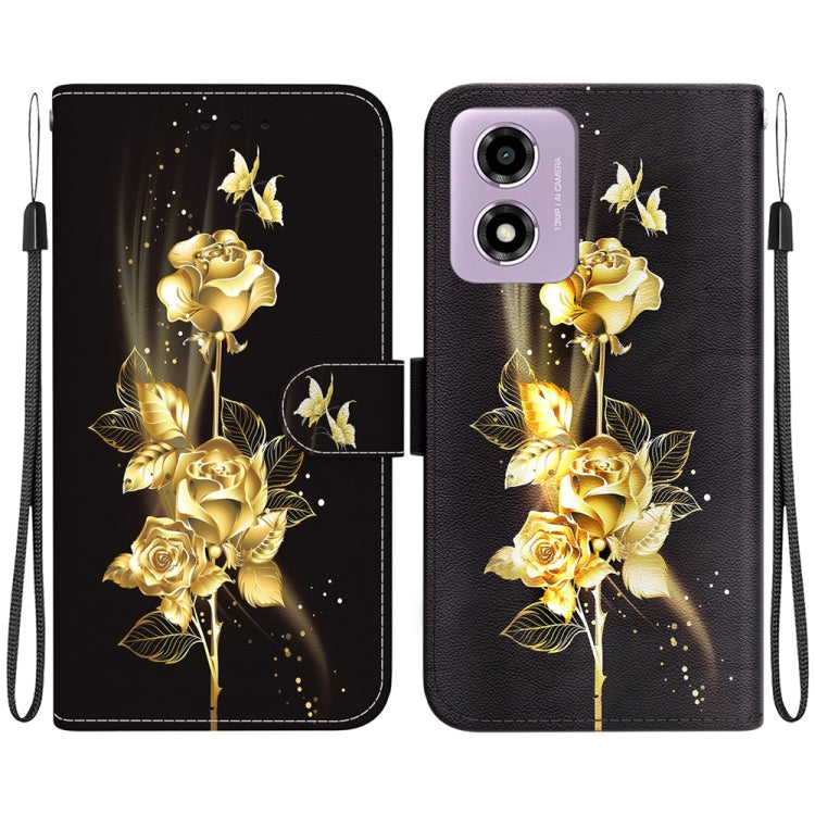 Funda para Motorola Moto G04S y Moto E14 de Cuero con Dibujo Coloreado y Textura de Cristal (Mariposa Dorada Rosa)