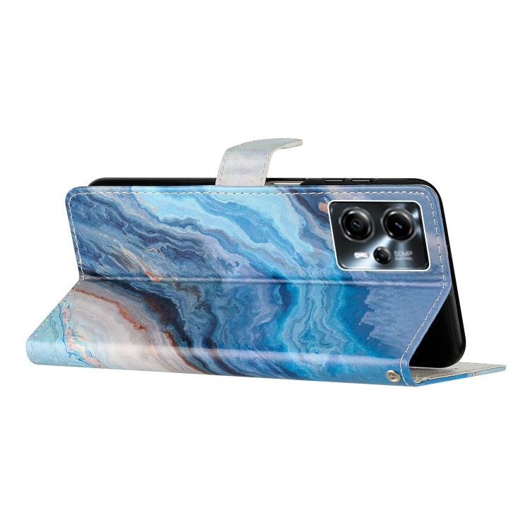 - 1x Estuche de Cuero para Motorola Moto G13 G23 G53 con Dibujo Coloreado (Mármol Azul)