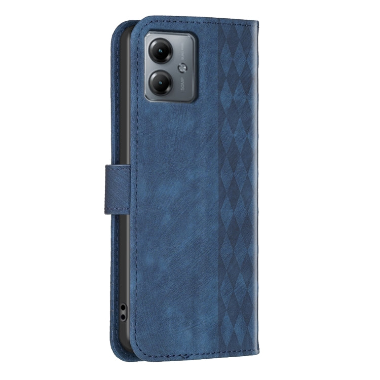 Funda de Cuero para Motorola Moto G14 4G con Relieve a Cuadros (Azul)