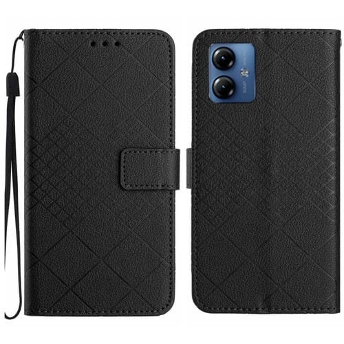 - 1x Funda de Cuero para Motorola Moto G14 4G con Textura de Rejilla Rómbica (Negro)