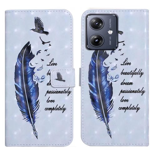 Funda de Cuero para Motorola Moto G14 4G con Dibujo 3D en Relieve (Pluma Azul)