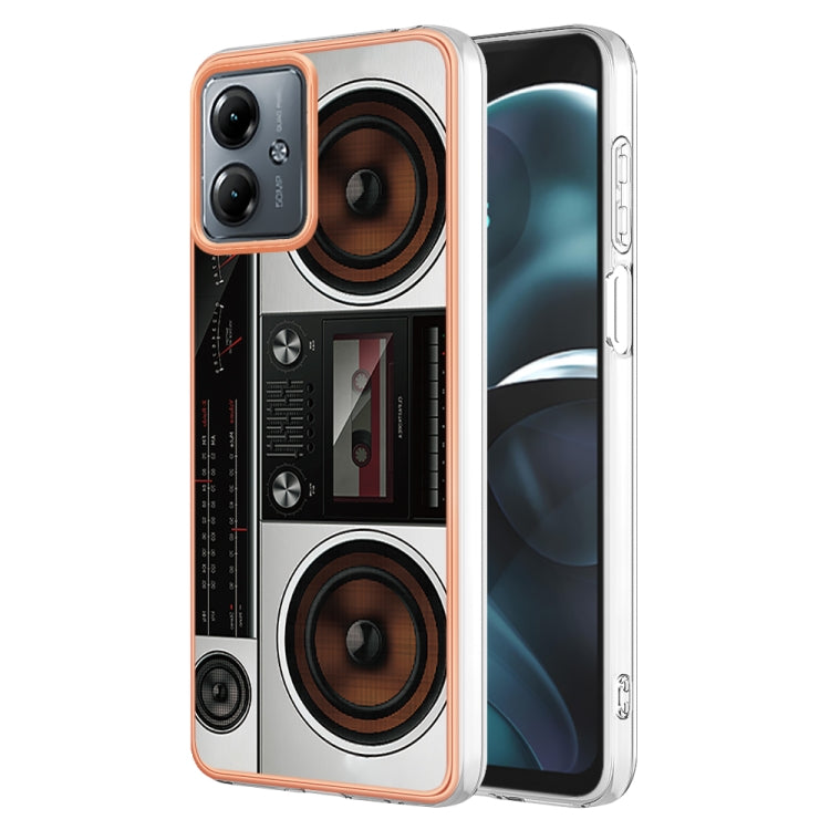 Caja de Teléfono IMD Doble Cara Mármol Galvanizado para Motorola Moto G14 (Radio Retro)