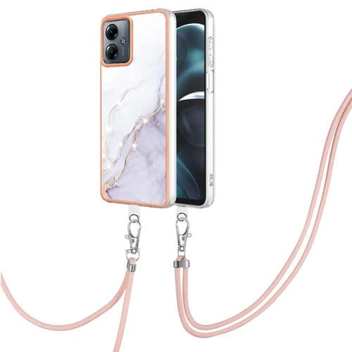 Estuche para Motorola Moto G14 IMD Doble Cara Mármol Galvanizado con Cordón (Blanco)
