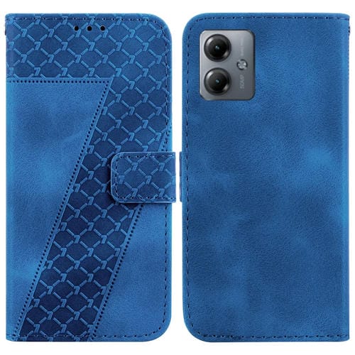 - 1x Funda de Cuero para Motorola Moto G14 con Relieve en Forma de 7 (Azul)