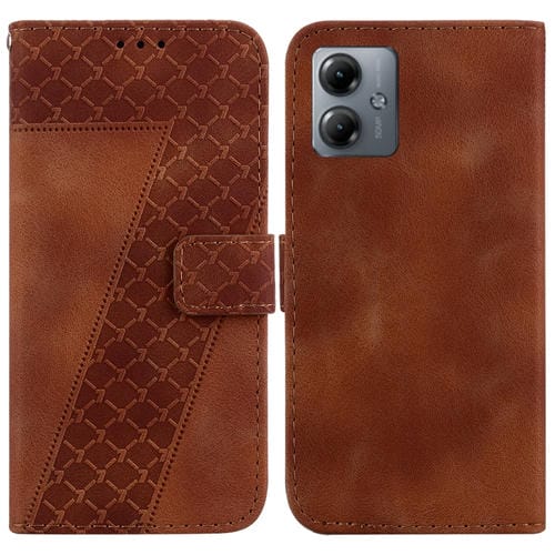 - 1x Funda de Cuero para Motorola Moto G14 con Relieve en Forma de 7 (Marrón)