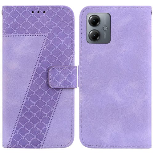 - 1x Funda de Cuero para Motorola Moto G14 con Relieve en Forma de 7 (Púrpura)