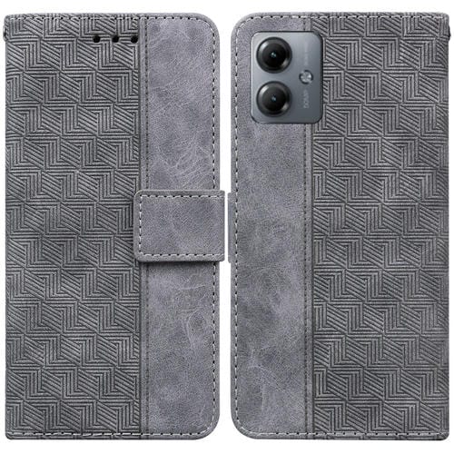 - 1x Funda de Cuero para Motorola Moto G14 con Relieve Geométrico (Gris)