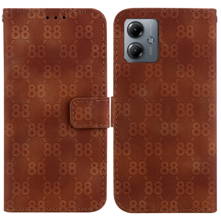 Funda para Motorola Moto G14 de Cuero En Relieve con Doble Forma de 8 (Marrón)