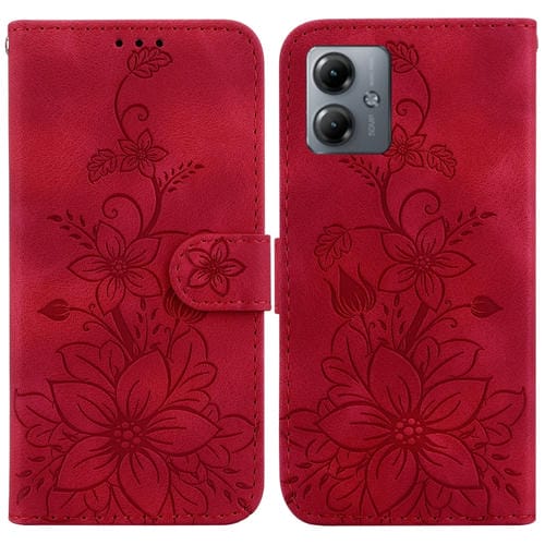 Funda de Cuero en Relieve para Motorola Moto G14 Lily para Teléfono (Rojo)