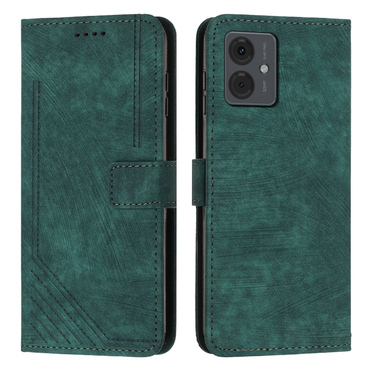 Funda de Cuero para Motorola Moto G14 Skin Feel con Patrón de Rayas y Cordón (Verde)