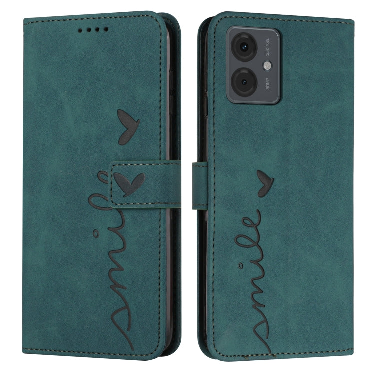Funda de Cuero para Motorola Moto G14 Skin Feel con Patrón de Corazón (Verde)