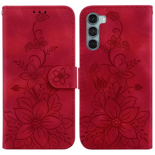 Funda para Motorola Moto G200 5G Edge S30 de Cuero con Relieve Lily (Rojo)