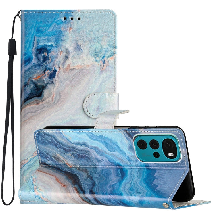 Estuche para Motorola Moto G22 de Cuero con Dibujo Coloreado (Mármol Azul)