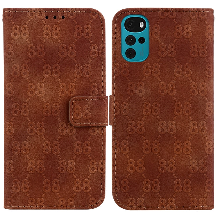 Estuche para Motorola Moto G22 de Cuero en Relieve con Doble Forma de 8 (Marrón)