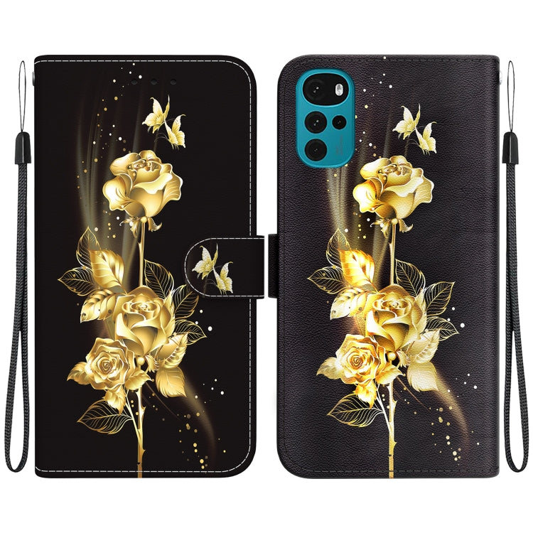 Funda de Cuero para Motorola Moto G22 con Dibujo Coloreado y Textura de Cristal (Mariposa Dorada Rosa)