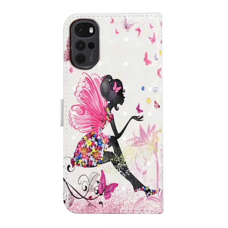 Funda de Teléfono Motorola Moto G22 Cuero con Dibujo 3D en Relieve al Óleo (Hada de Flores)