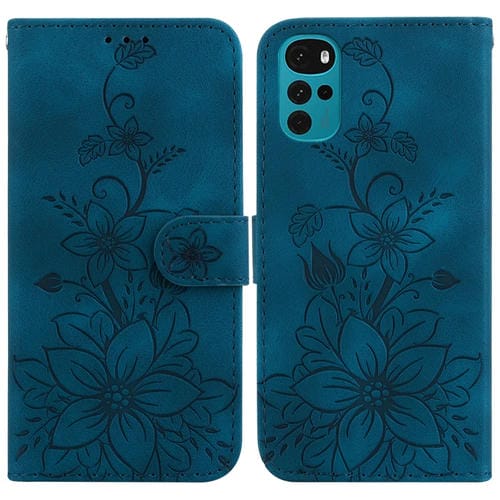Funda para Motorola Moto G22 Lily de Cuero en Relieve (Azul Oscuro)