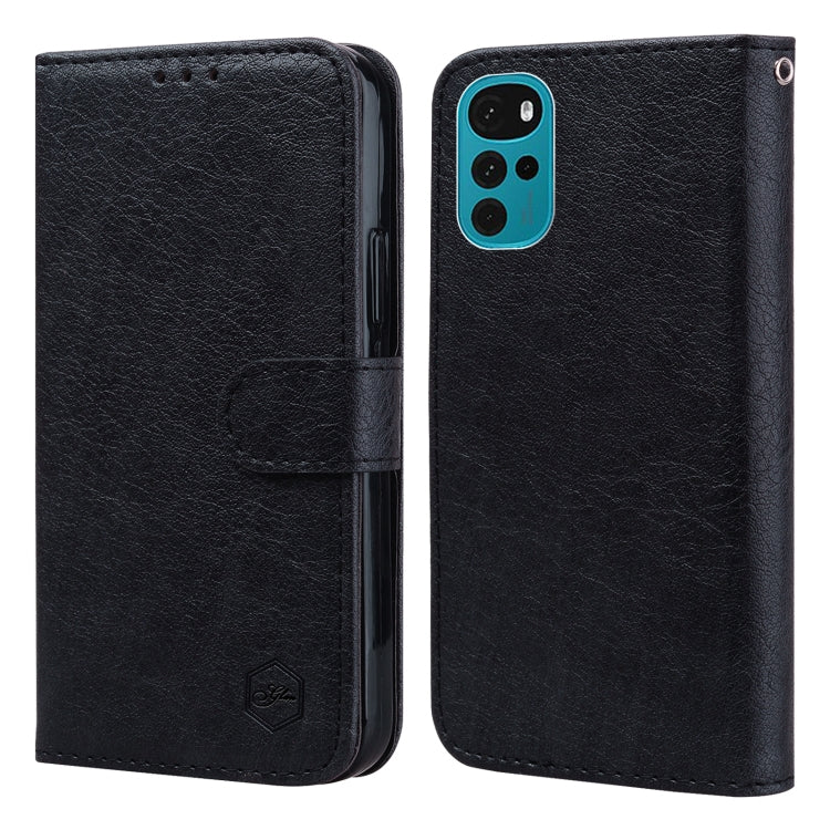 Funda para Motorola Moto G22 Sensación de Piel Textura Cuero Aceitoso PU + TPU (Negro)
