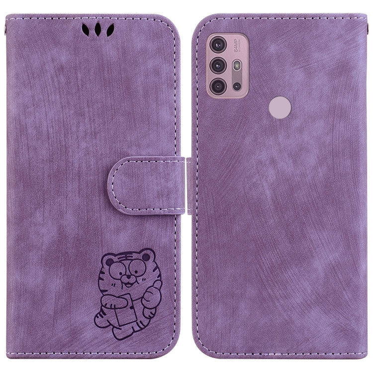 Funda de Cuero con Relieve Little Tiger para Motorola Moto G30 / G10 / G20 (Púrpura)