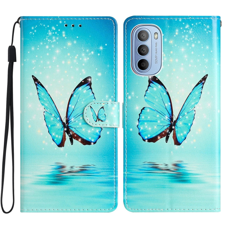 - 1x Estuche para Motorola Moto G31 / G41 de cuero con dibujo coloreado mariposa azul