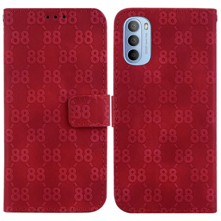 - 1x Estuche para Motorola Moto G31 / G41 de Cuero en Relieve con Doble Forma de 8 (Rojo)