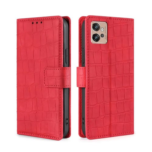 Funda de Cuero Skin Feel Cocodrilo con Cierre Magnético para Motorola Moto G32 4G (Rojo)