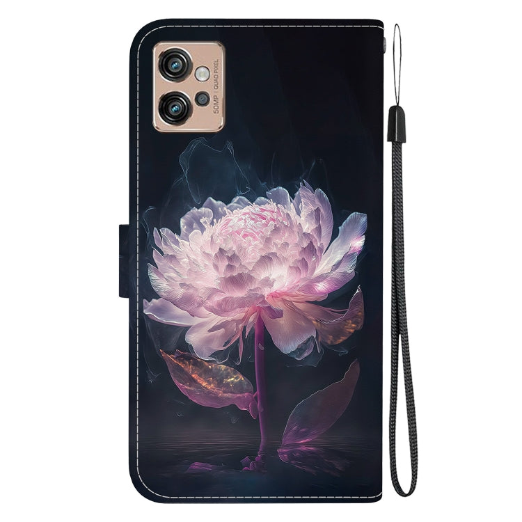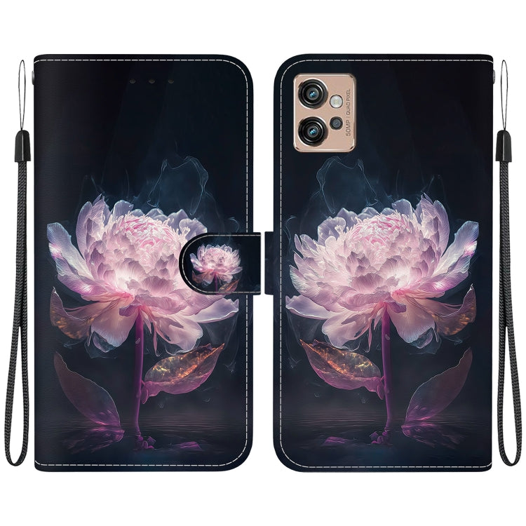Funda de Cuero para Motorola Moto G32 con Dibujo Coloreado y Textura de Cristal (Peonía Púrpura)