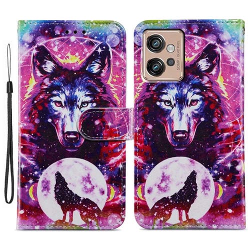 Funda de Cuero para Motorola Moto G32 con Tapa Horizontal y Patrón Tótem de Lobo