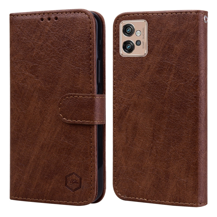 Funda para Motorola Moto G32 Sensación de Piel Textura de Cuero Aceitoso PU + TPU (Marrón)