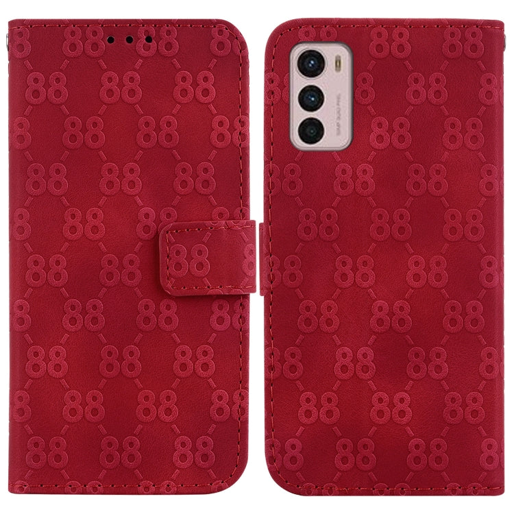- 1x Estuche para Motorola Moto G42 de Cuero en Relieve con Doble Forma de 8 (Rojo)