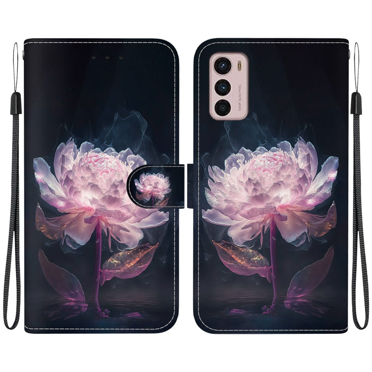 Funda de Cuero para Motorola Moto G42 con Dibujo Coloreado y Textura de Cristal (Peonía Púrpura)