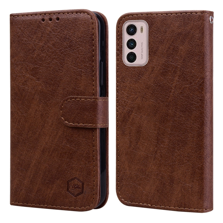 Funda para Motorola Moto G42 Sensación de Piel Textura Cuero Aceitoso PU + TPU (Marrón)
