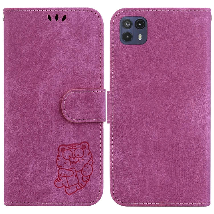 Funda de Cuero para Motorola Moto G50 5G con Relieve Little Tiger (Rojo Rosa)
