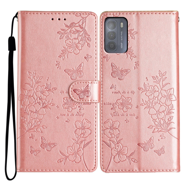 Funda de Cuero para Motorola Moto G50 con Mariposas y Flores (Oro Rosa)