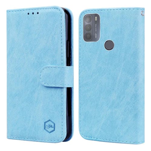 For Motorola Moto G50 Skin Feel Oil Texture PU Leather + TPU Phone Case(Light Blue)
