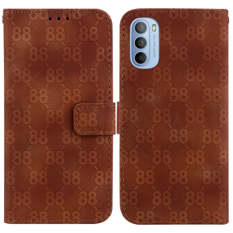 Estuche para Motorola Moto G51 de Cuero en Relieve con Doble Forma de 8 (Marrón)