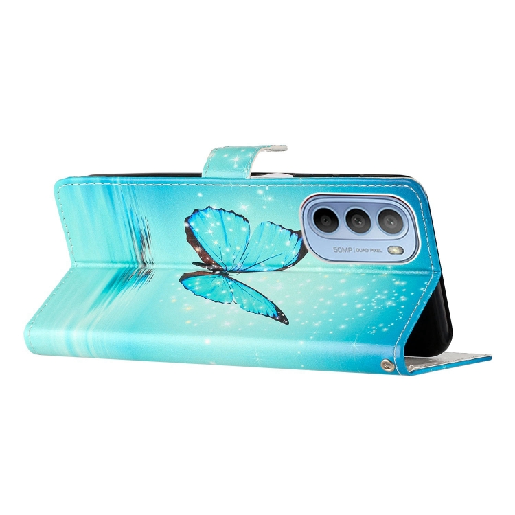 - 1x Estuche para Motorola Moto G52 de cuero con dibujo coloreado mariposa azul