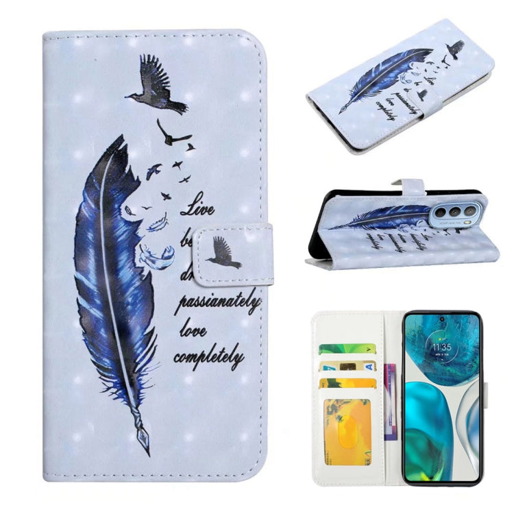 Funda de Cuero para Motorola Moto G52 con Dibujo 3D en Relieve al Óleo (Pluma Azul)