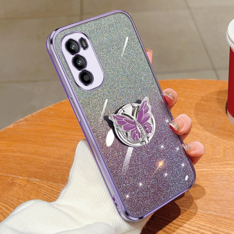 Funda para Motorola Moto G52 TPU con Soporte Mariposa y Brillo Degradado (Púrpura)