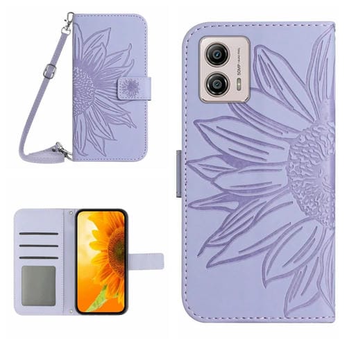 Funda de Cuero para Motorola Moto G53 5G/G13/G23 Ht04 Skin Feel con Tapa y Cordón (Púrpura)