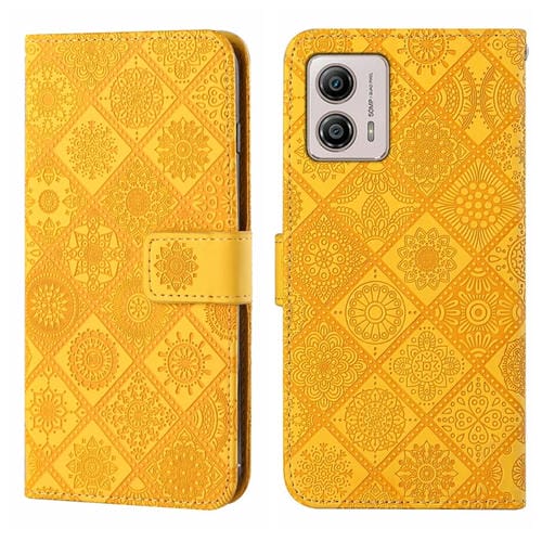Funda de Cuero para Motorola Moto G53 con Patrón en Relieve Estilo Étnico (Amarillo)