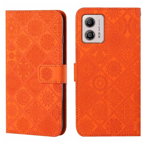 Funda para Motorola Moto G53 de Cuero con Patrón en Relieve Estilo Étnico (Naranja)