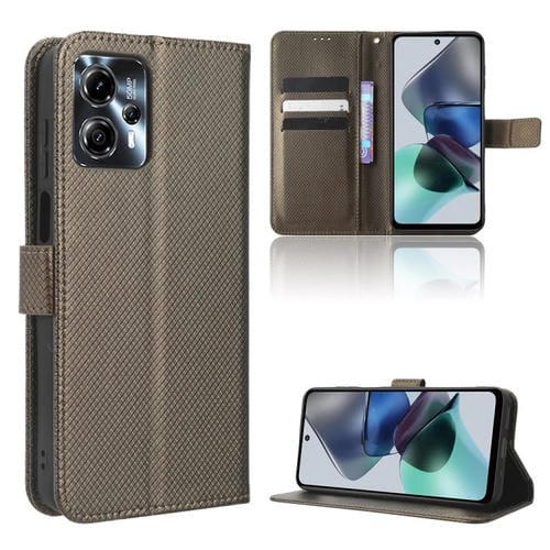 - 1x Caja de Teléfono para Motorola Moto G53 y G13 en Cuero con textura de diamante (Marrón)