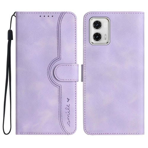 For Motorola Moto G53 / G13 / G23 Leather Phone Case Skin Feeling Heart Pattern (Purple)
